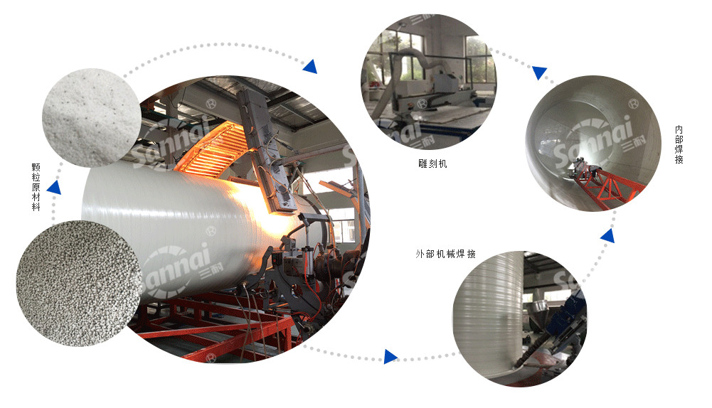 采用擠出纏繞無焊縫機組,自動化焊接技術及生產裝備